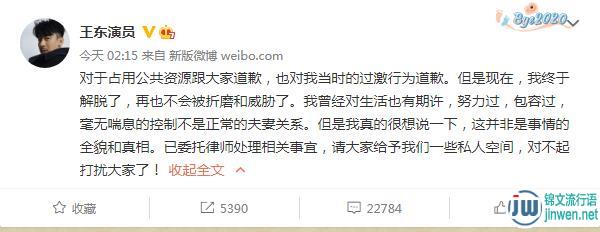 目前,王东发微博道歉,称“我终于解脱了,再也不会被折磨和威胁了”。同时强调,视频并非事情的全貌和真相,已委托律师处理相关事宜。