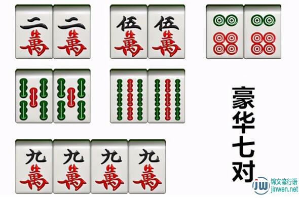6、连七对由一种花色序数牌组成序数相连的7个对子的和牌。不计清一色、不求人、单钓