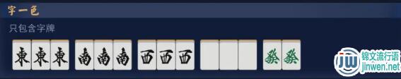 和牌时,牌型必须由7个单张东、西、南、北、中、发、白,加上3种花色且数位按147、258、369中的7张序数牌组成,此中胡牌牌型不需要将牌。
