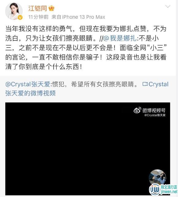 近日,由于张天爱实锤前男友徐开骋出轨事件在网上闹的沸沸扬扬,之后绯闻女主之一的娜扎率先转发,称自己不是小三,这段录音也让自己看清了徐开骋是什么东西,而当年曾深陷“光膀子挤痘痘”事件的江铠同也转发了娜扎的发言表示:“当年我没有这样的勇气,但现在我要为娜扎点赞,不为洗白,只为让女孩们擦亮眼睛。”