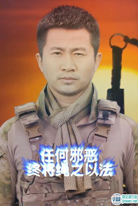 又因为拍摄的正能量短剧过于尴尬的剧情,在每次视频的结尾都会说上一句“任何邪恶都将绳之以法”,再配合上五毛钱特效,就像变身动画一样,被大家调侃为:战狼铠甲。